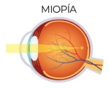 Ojo miope: los rayos luminosos enfocan delante de la retina. Los miopes son popularmente llamados cortos de vista, porque pueden ver bien de cerca, pero tienen visión borrosa para ver de lejos.